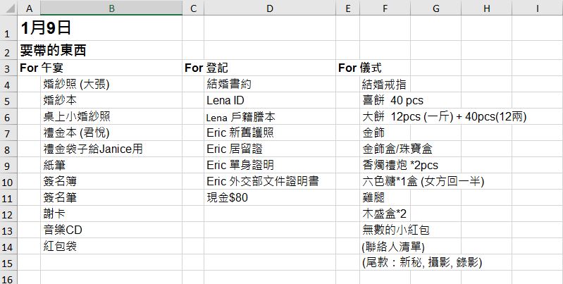 – 兩個各自都有需要準備的東西,所以列出來提醒