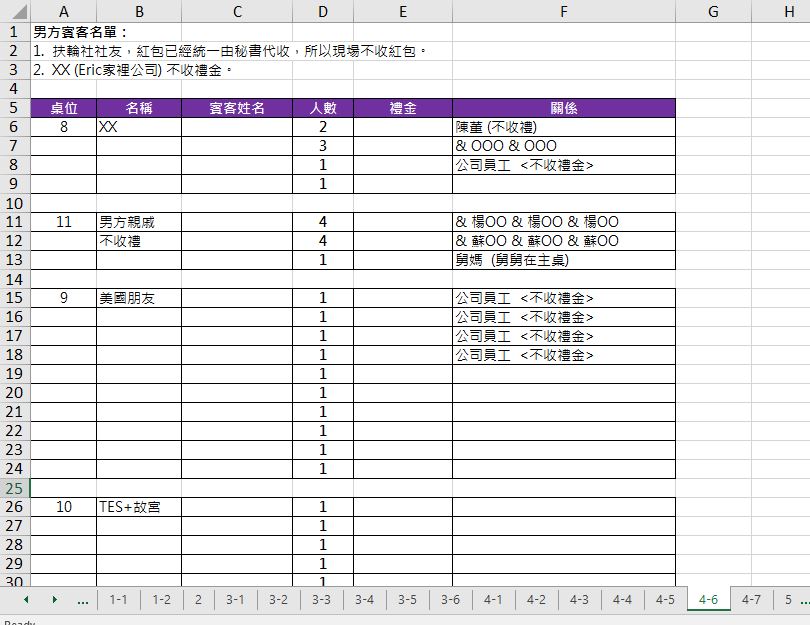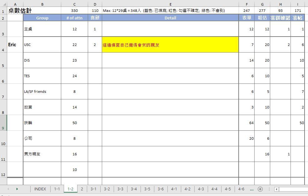 – 我是用google drive,請老公同時估計有哪些朋友想邀請、應該會來台灣參加,