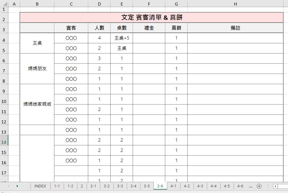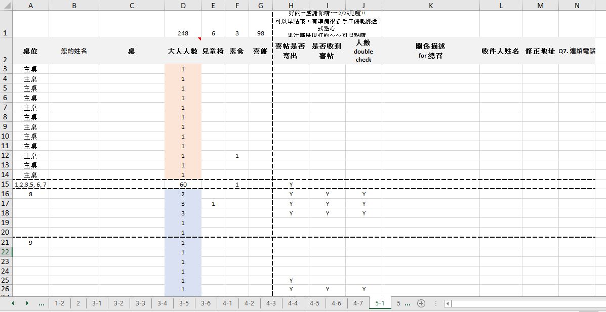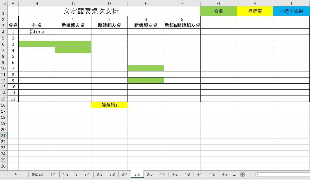 – 特別將賓客分成 大人#、兒童椅#、素食#、喜餅#