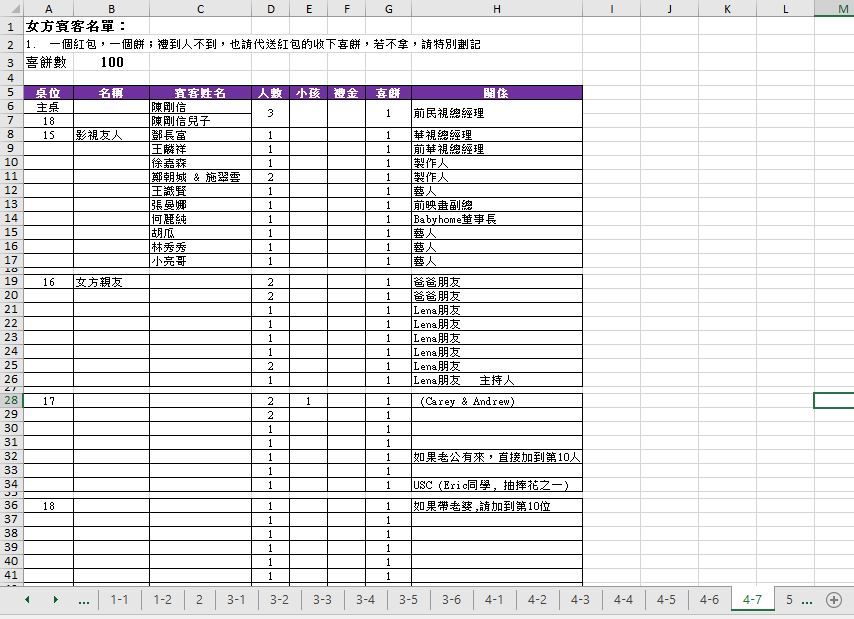 – 這張是透過google表單,收集好喜帖名單之後整理的