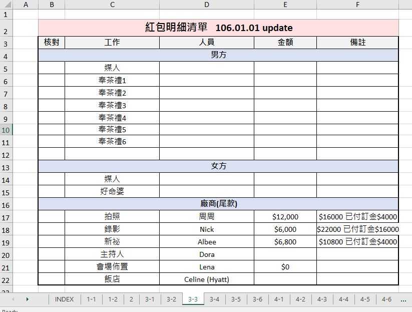 – 最上方:分男方出錢 & 女方出錢 兩大部分