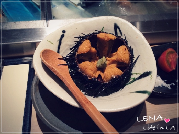 我有加一滴的醬油,整個海膽的香氣配著wasabi,在舌尖開始香味散發出來