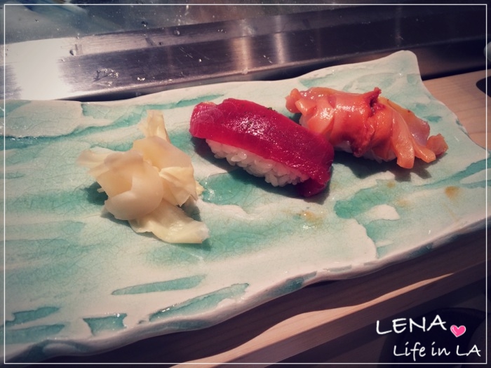 十貫壽司 (中鮪魚&海膽壽司我吃兩份) + 生菜(沒拍照),總共11道,
