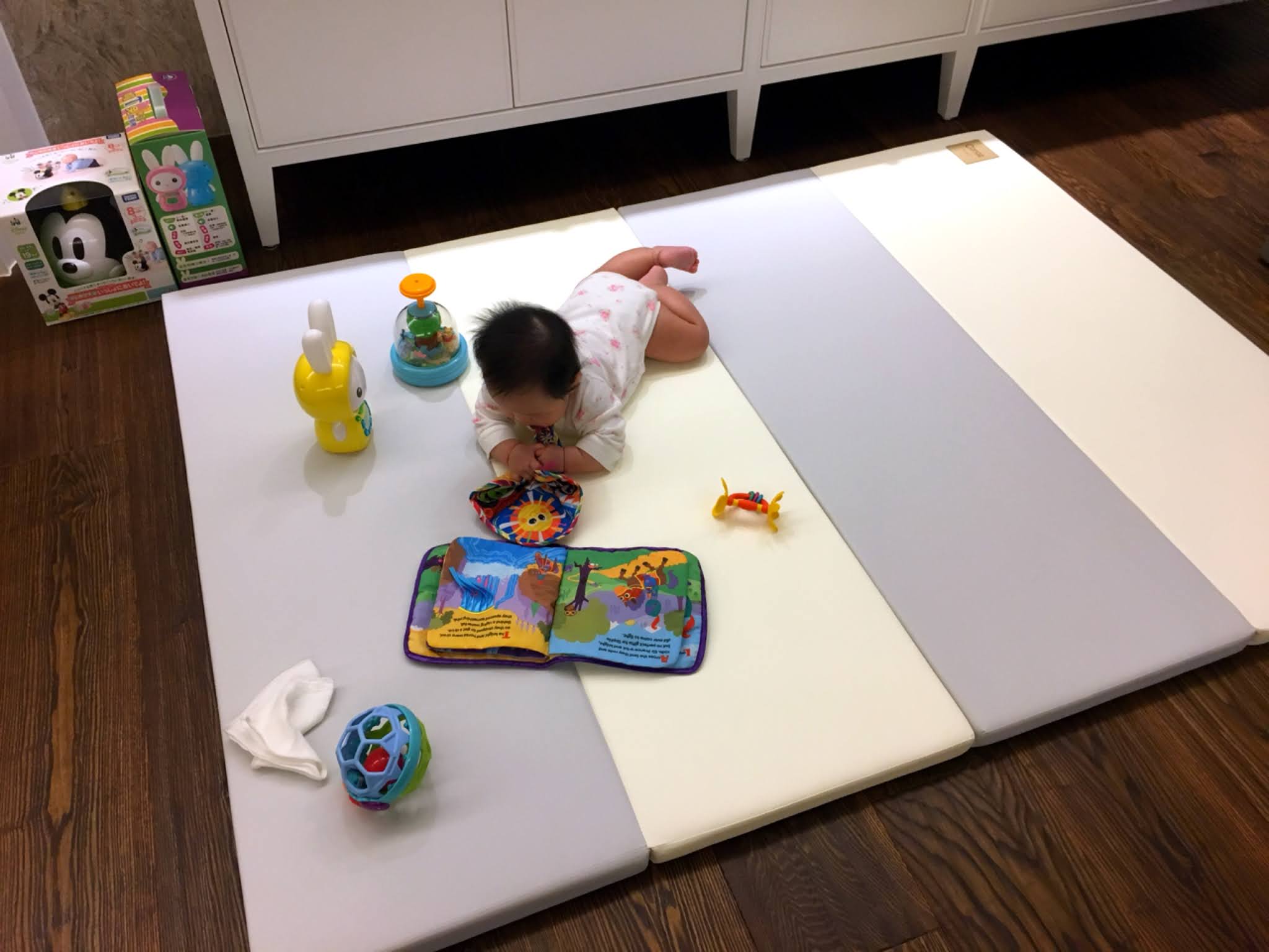 只有0~1.5個月大時,會放床上會願意踢個幾下,之後就完全不碰,甚至6個月玩的時候,被鋼琴音樂嚇到,哭得很慘….