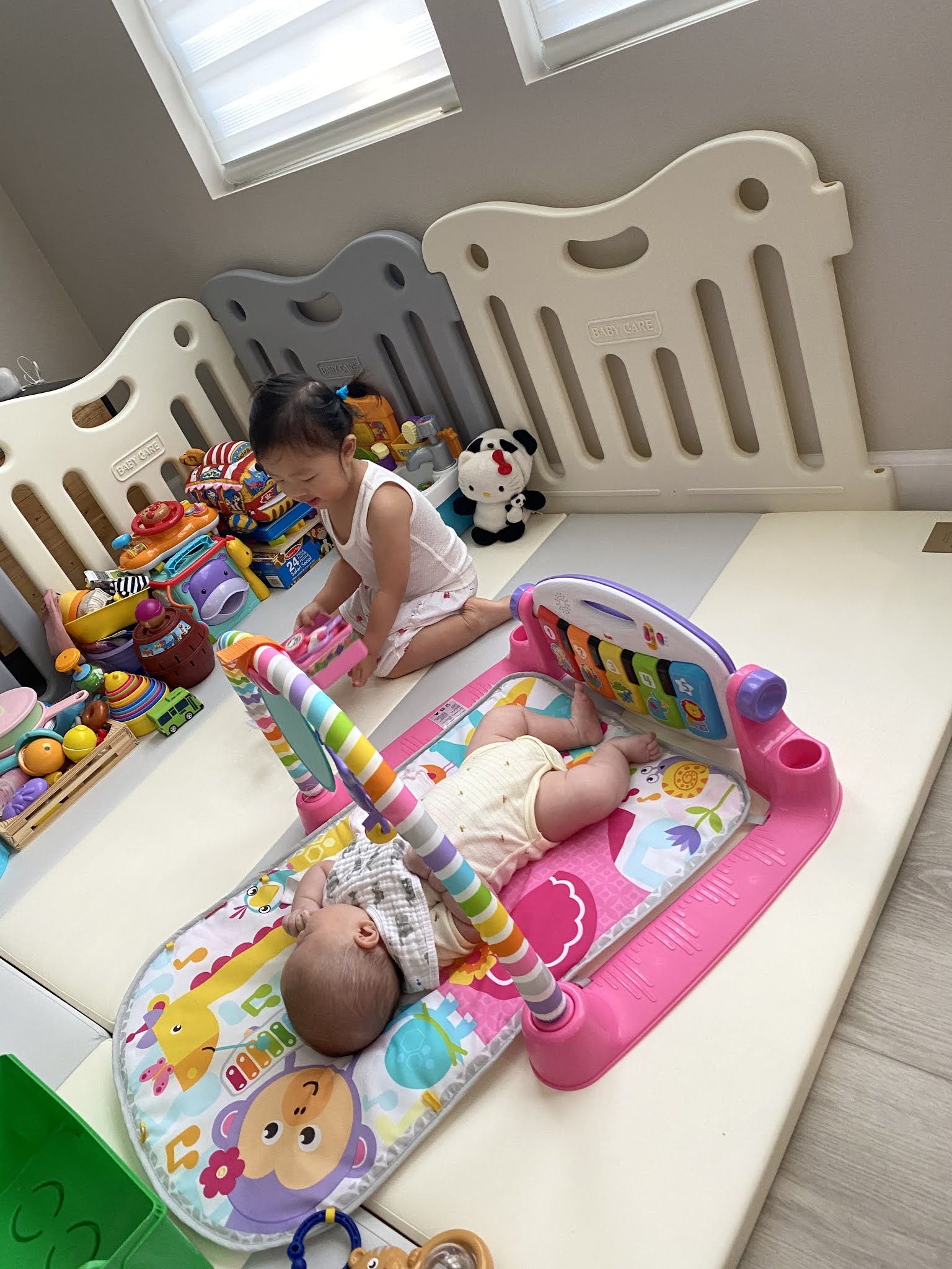在美國,我是買Tiny Love這組簡易型,因為我家放在地墊上的音樂型玩具實在太多了,而且還有大寶這個移動式玩具陪弟弟。
