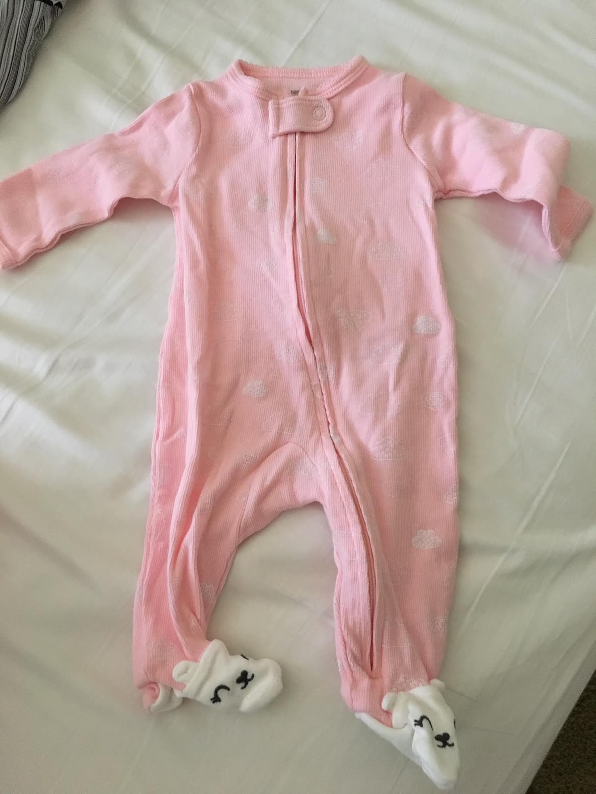 - 拉鍊款:Carter’s幾乎是拉鍊款,我3m、6m都有買一兩件,從醫院帶回家時就是穿這個,只要帶一件就好 (不然包屁衣,就要加帶長褲+襪子)。