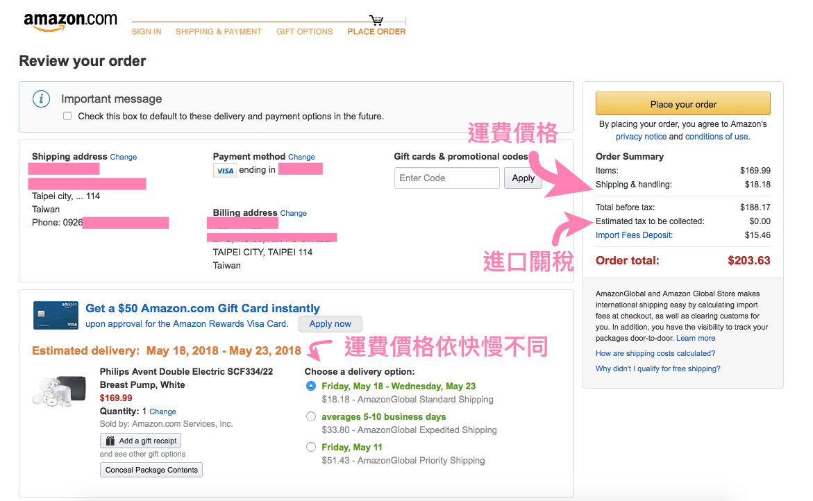 結束!Amazon 美國的寄件還滿準時的,有時候還會提早到貨~(很常這樣幫家人買東西)