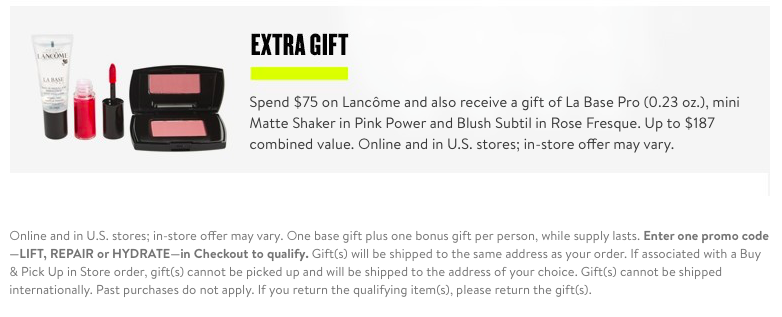 Lancome 蘭蔻:滿 $75,再送 以下商品: