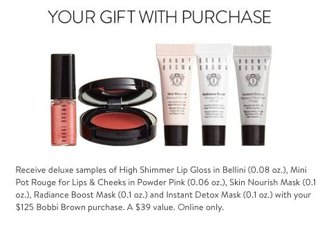 - Bobbi Brown:滿 $125 就送以下商品 面膜 x 3 + 唇蜜 + 口紅腮紅膏