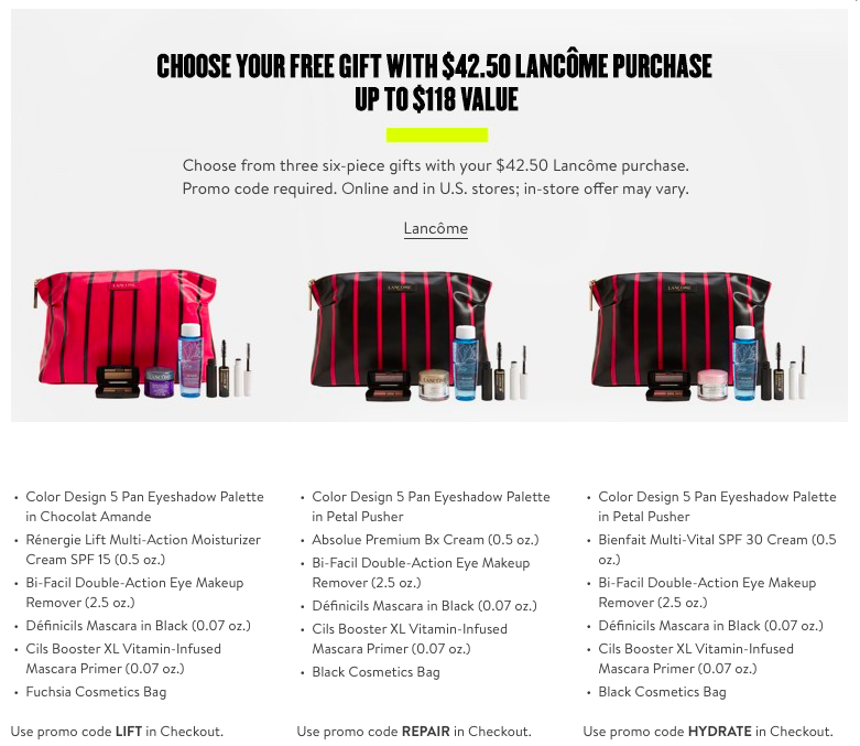 Lancome 蘭蔻:也有 滿 $42.50,就送價值$118的組合(三選一)