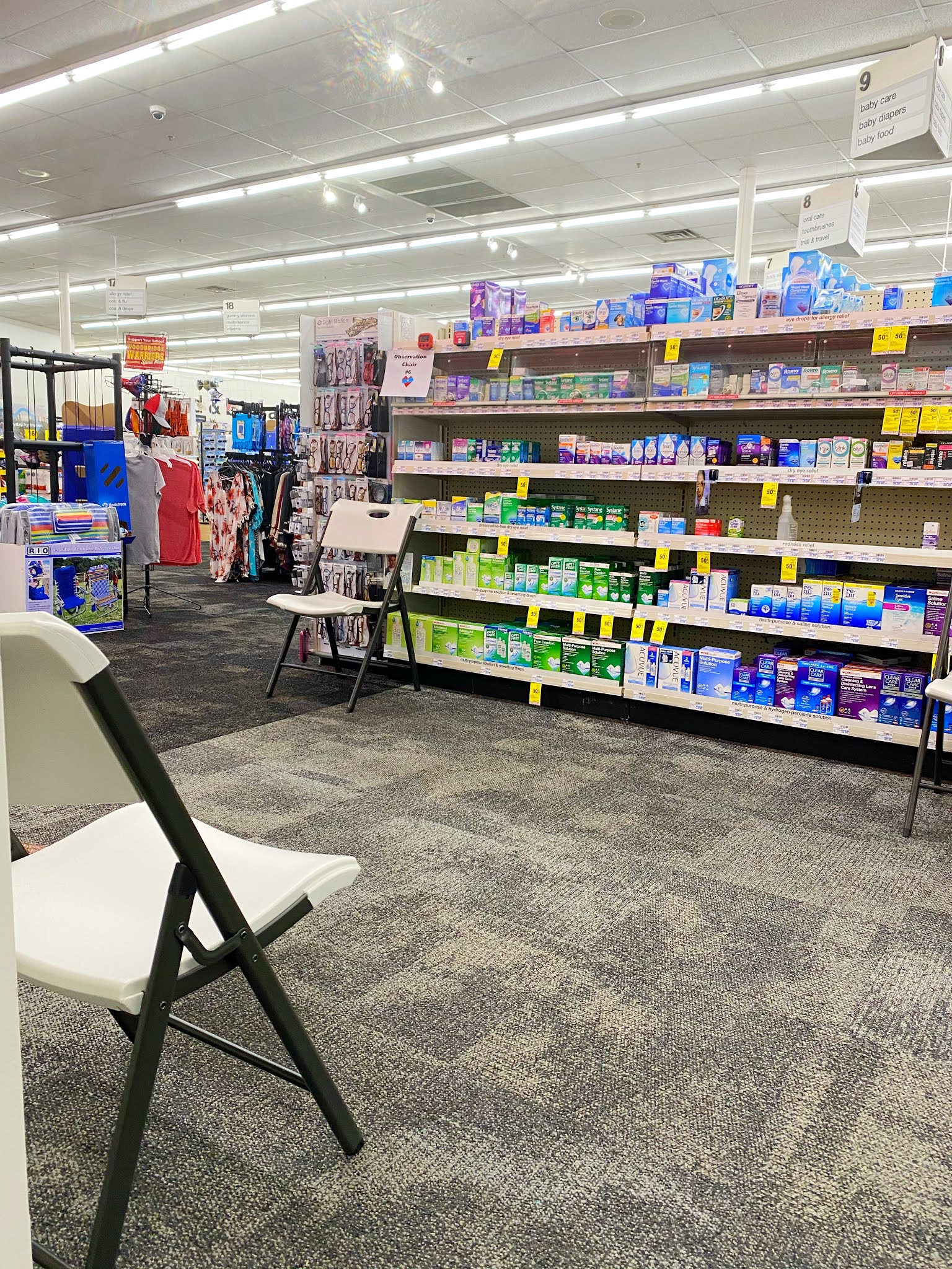 我去的這家CVS,打完的等候區有5-6個位置,每次人一走,工作人員就會噴酒精,看起來安心許多 (雖然我上車之前也是用酒精噴灑全身)。每一個座位上方,都會有個計時計,15分鐘一到,就會逼逼響。