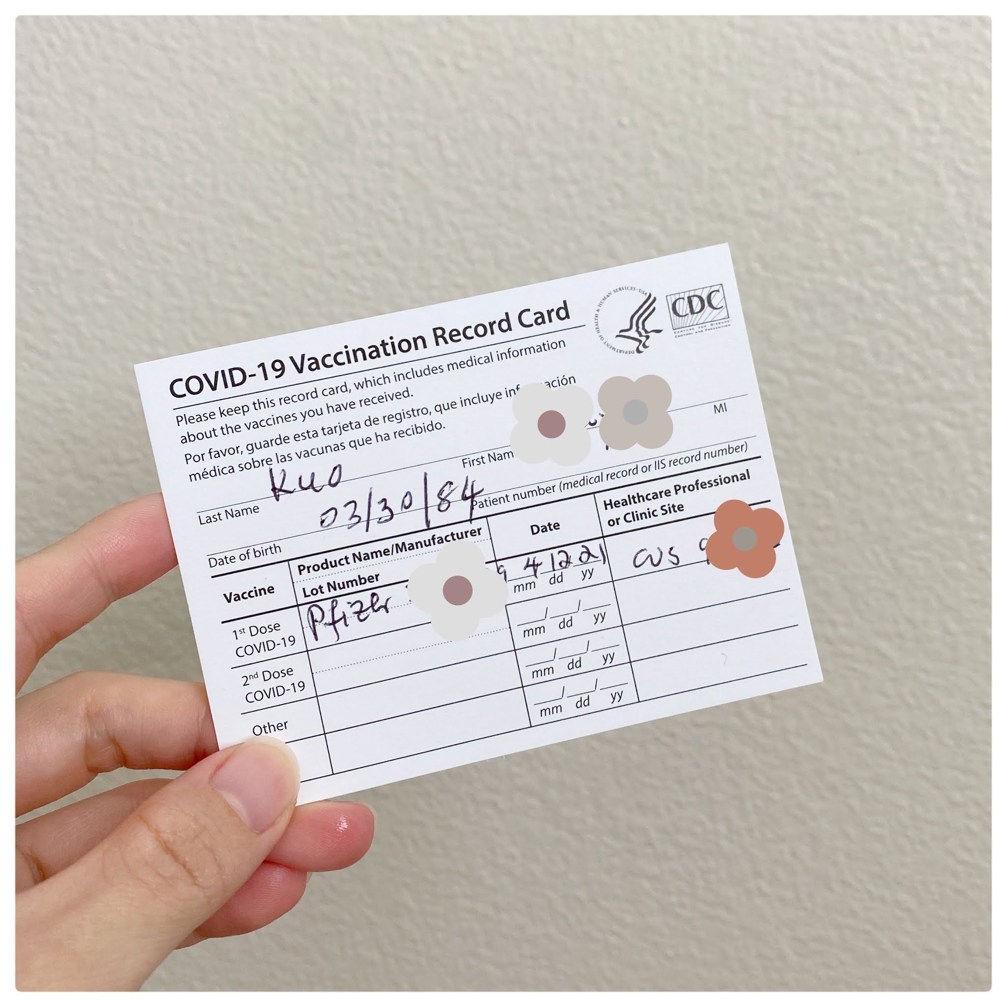 我跟老公各在不同的地方打,不過都是打 Pfizer 輝瑞。沒有像其他人一樣,是跑去大活動場所、drive thru打疫苗,我們是在家附近的藥局打。