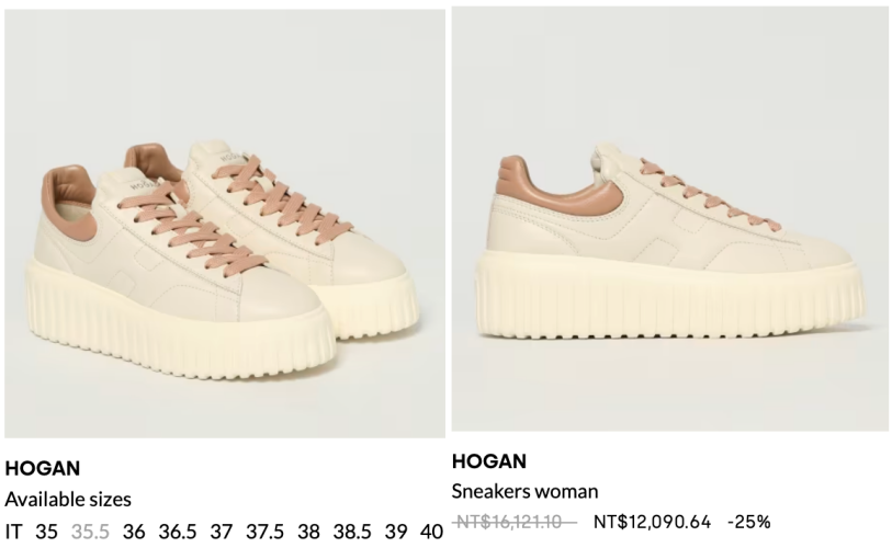 ◉ HOGAN 餅乾鞋 駝色 尺碼齊全, 特價$12,090,但有些尺碼價格不一樣喔!