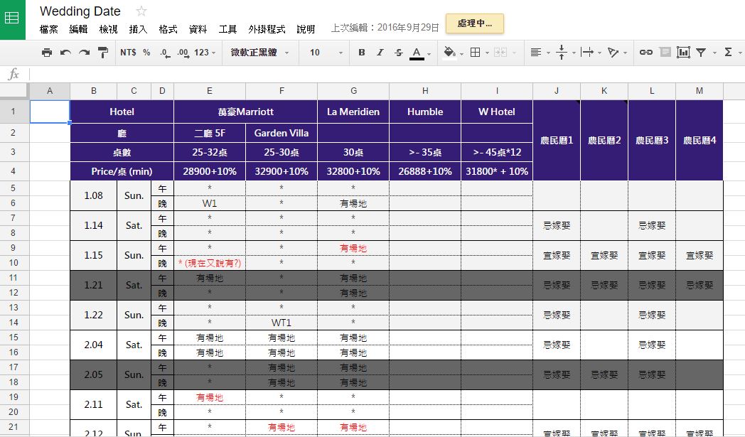 補充:我的表格上,忌嫁娶很多場地都已經被包,是因為遇到過年前有尾牙